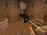 | Fun and clear with the emphasis on playability is the motto for this brilliant level with a twist. Like always, you're on a mission and all of your chums are stone dead, leaving poor old you to kick some donkey and get the hell outta dodge. Unfortunately, this is a war, and and all of the chaps on the front line have sweethearts at home sewing blankets that want to know if their boys are dead so they can go back out man hunting. Find all of your fallen pals' dogtags and then get the hell outta dodge. Okay, I'll stop talking like I'm from WWII, but this level with it's ingenious twist rules totally. A change from the duldrums of fight, run fight run, this level present's a macarbre game of Scavenger Hunt as you maraude around another poor Strogg base. Do you thing these Strogg are a bit thick? I mean, every week one man get's through and destroys everything. A bit slow, methinks. But I'm going off the plot again. Let's carry on... The archetecture, while not awe-inspiring, is still very functual and better than a lot I have seen. The crates are very preey and the sectors of the base, with their deep hues are all very pretty. It's not really the looks that make this level the brilliant marvel that it is though. The action really is pulse-pounding and fun, especially on hard skill. I spent a day working through this, playing it a few times, and I never got bored. that, to me, is a good level. And this level is good. get it. Now. You have been told.