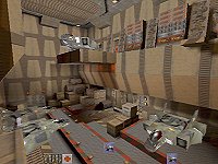 author: Travis Almand. this archive contains four different .bsp files, and unlike previous multi-level offerings, these levels can be played in just about any order (starting with zebo1.bsp). all levels share excellent running speeds and a solid adherence to theme; the F1s are concise and appropriate, but they don't seem to reset from level to level. also, all four levels are linear with some side areas to explore; needless to say, you won't get lost.Storage (zebo1) is a basic storage area; very blocky, filled with boxes (and what seems an abnormally-high amount of ammunition) and walkways. this level is pretty bright overall, and there are yellow security lasers blocking off a couple of doors, which i was never able to get through.